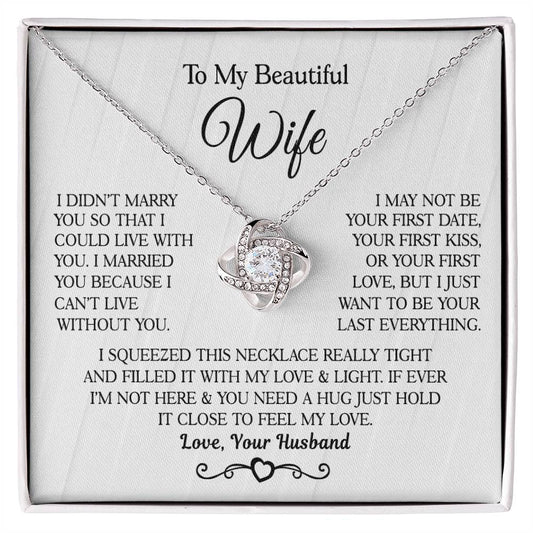 From Husband To Wife " I Married You Because I Cant Live Without You" Love Knot Necklace