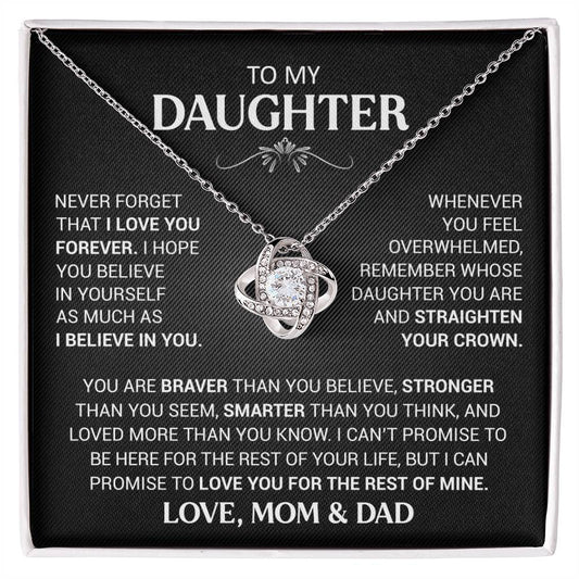 Beautiful Gift for Daughter From Mom and Dad - Believe In Yourself - Love Knot Necklace