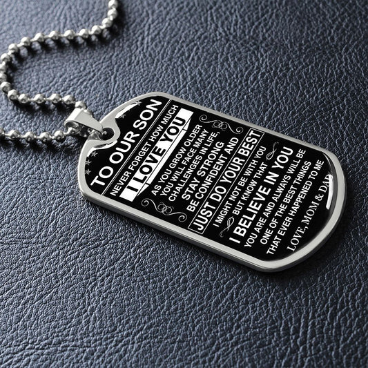 To Our Son - Never Forget How Much I love You - Dog Tag - Military Ball Chain