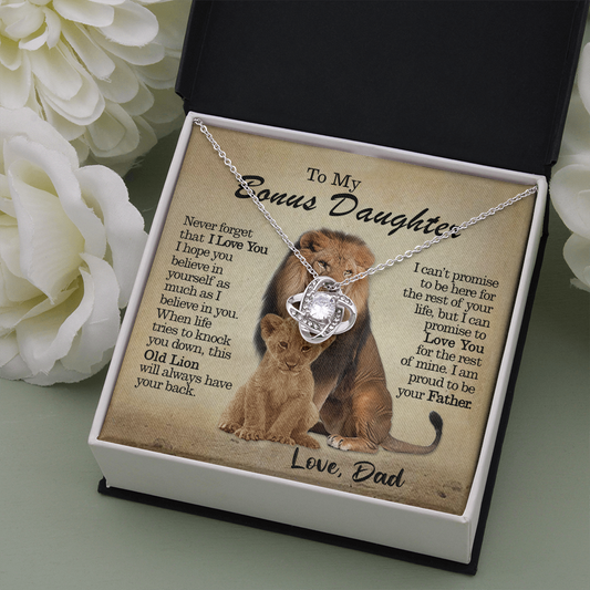 To My Bonus Daughter - This Old Lion Will Always Have Your Back - Love Knot Necklace