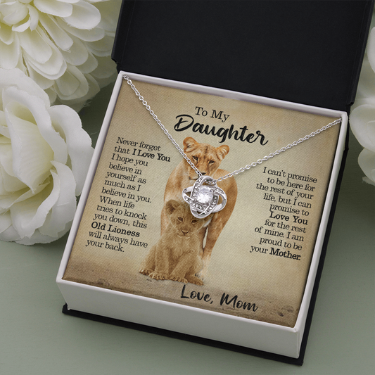To My Daughter - This Old Lioness Will Always Have Your Back - Love Knot Necklace