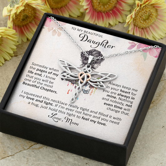 To My Beautiful Daughter - Someday When The Pages - Dragonfly Necklace