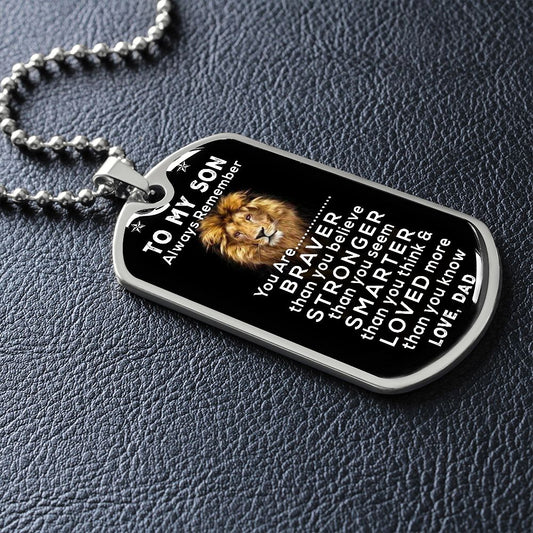 To My Son - Always Remember You Are Brave - Dog Tag - Military Ball Chain
