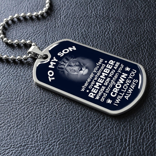 To My Son - Remember Whose Son You Are - Dog Tag - Military Ball Chain