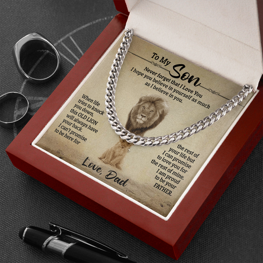 To My Son - This Old Lion Will Always Have Your Back - Cuban Link Necklace