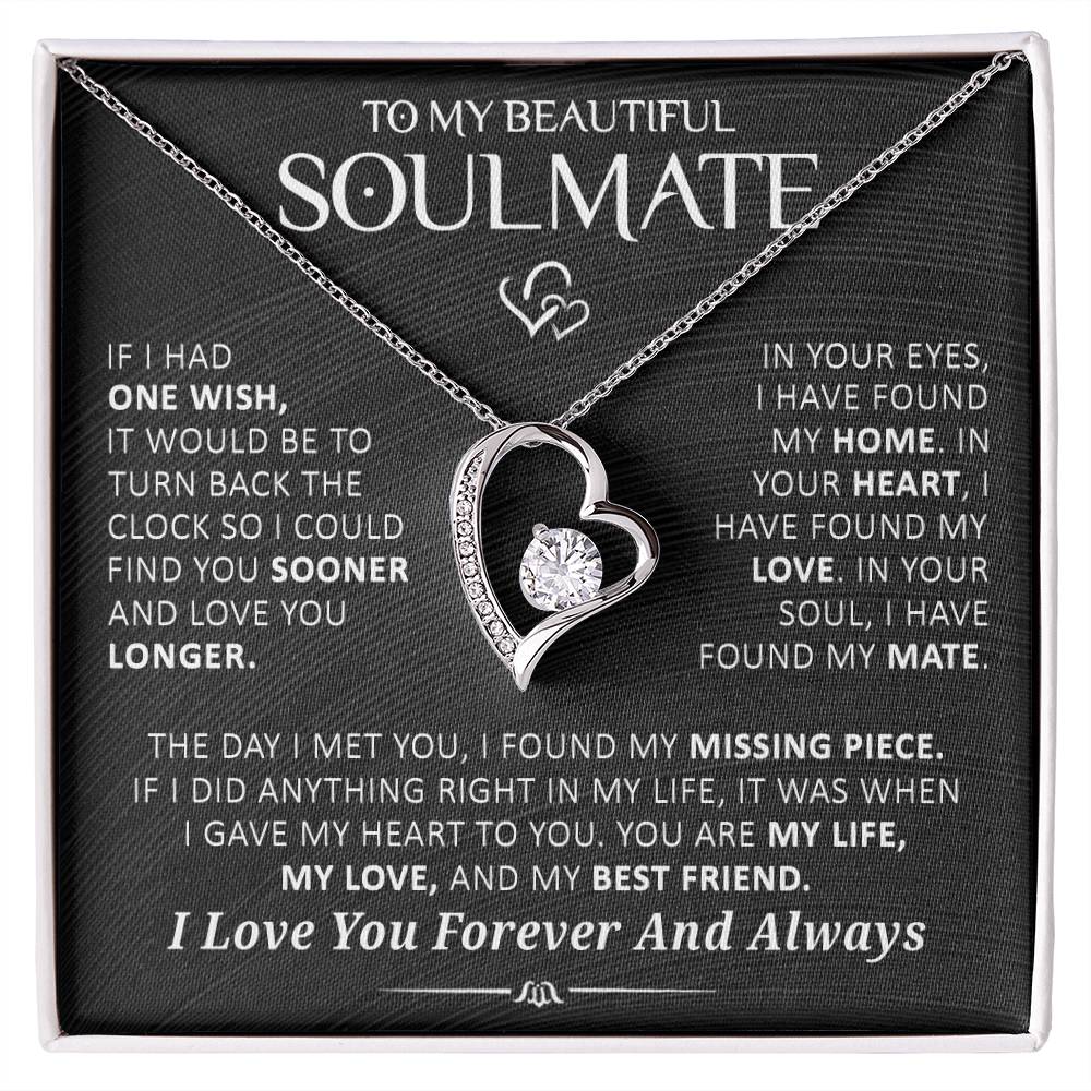The Message Says: "To My Beautiful Soulmate - If I had one wish, it would be to turn back the clock so I could find you sooner and love you longer. In your eyes, I have found my love. In your soul, I have found my mate. The day I met you, I found my missing piece. If I did anything right in my life, it was when I gave my heart to you. You are my life, my love, and my best friend. I love you forever and always."