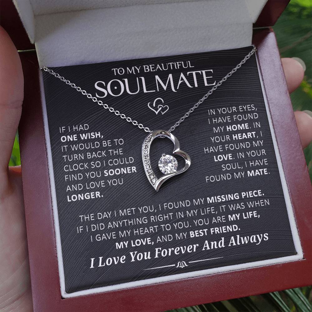 The Message Says: "To My Beautiful Soulmate - If I had one wish, it would be to turn back the clock so I could find you sooner and love you longer. In your eyes, I have found my love. In your soul, I have found my mate. The day I met you, I found my missing piece. If I did anything right in my life, it was when I gave my heart to you. You are my life, my love, and my best friend. I love you forever and always."