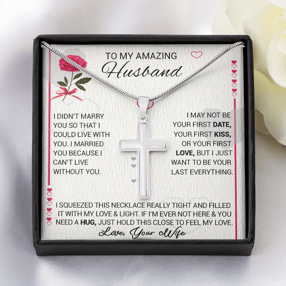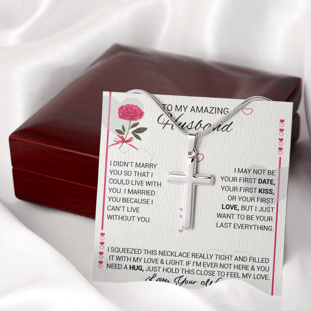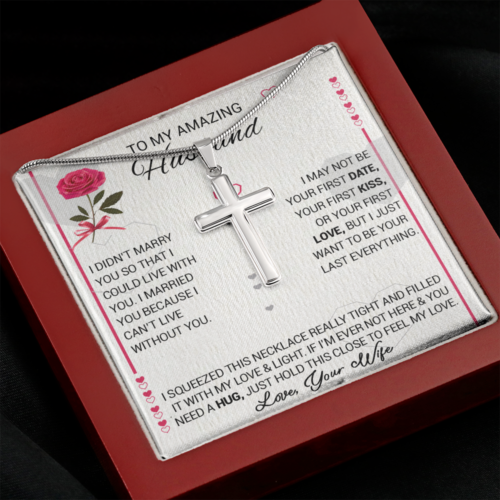 To My Amazing Husband - I Married You Because I Cant Live Without You - Cross Necklace