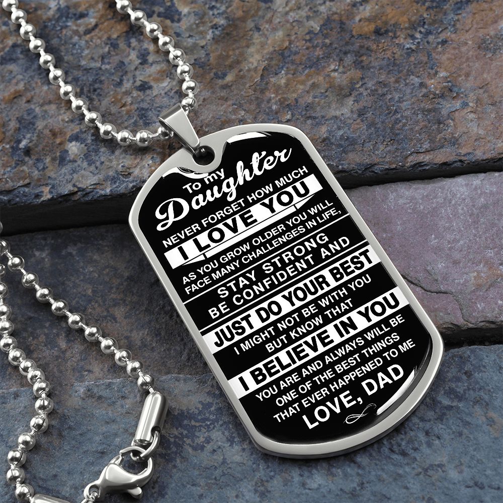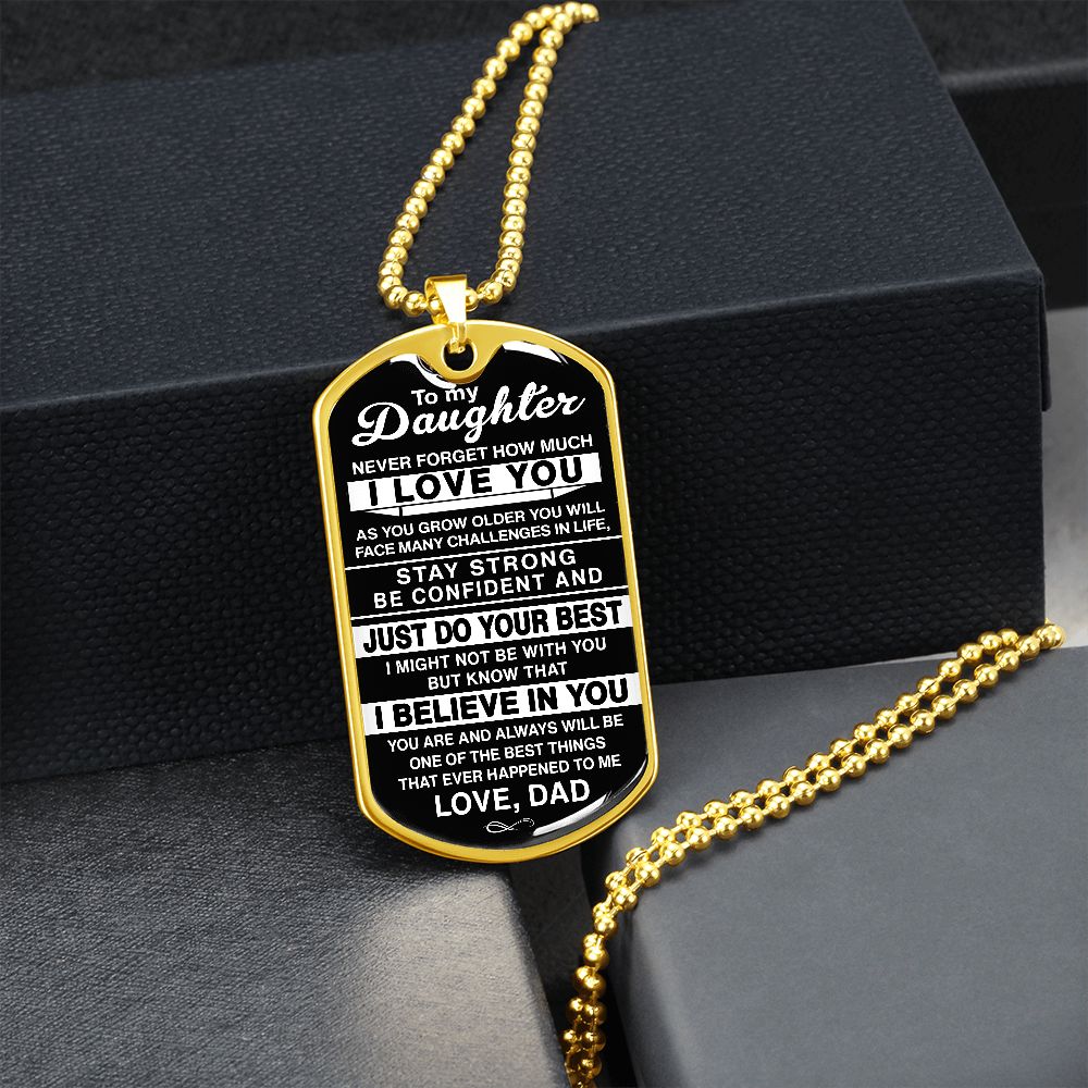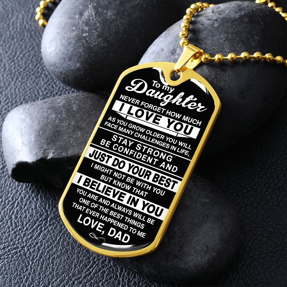 To My Daughter - Never Forget How Much I love You - Dog Tag - Military Ball Chain