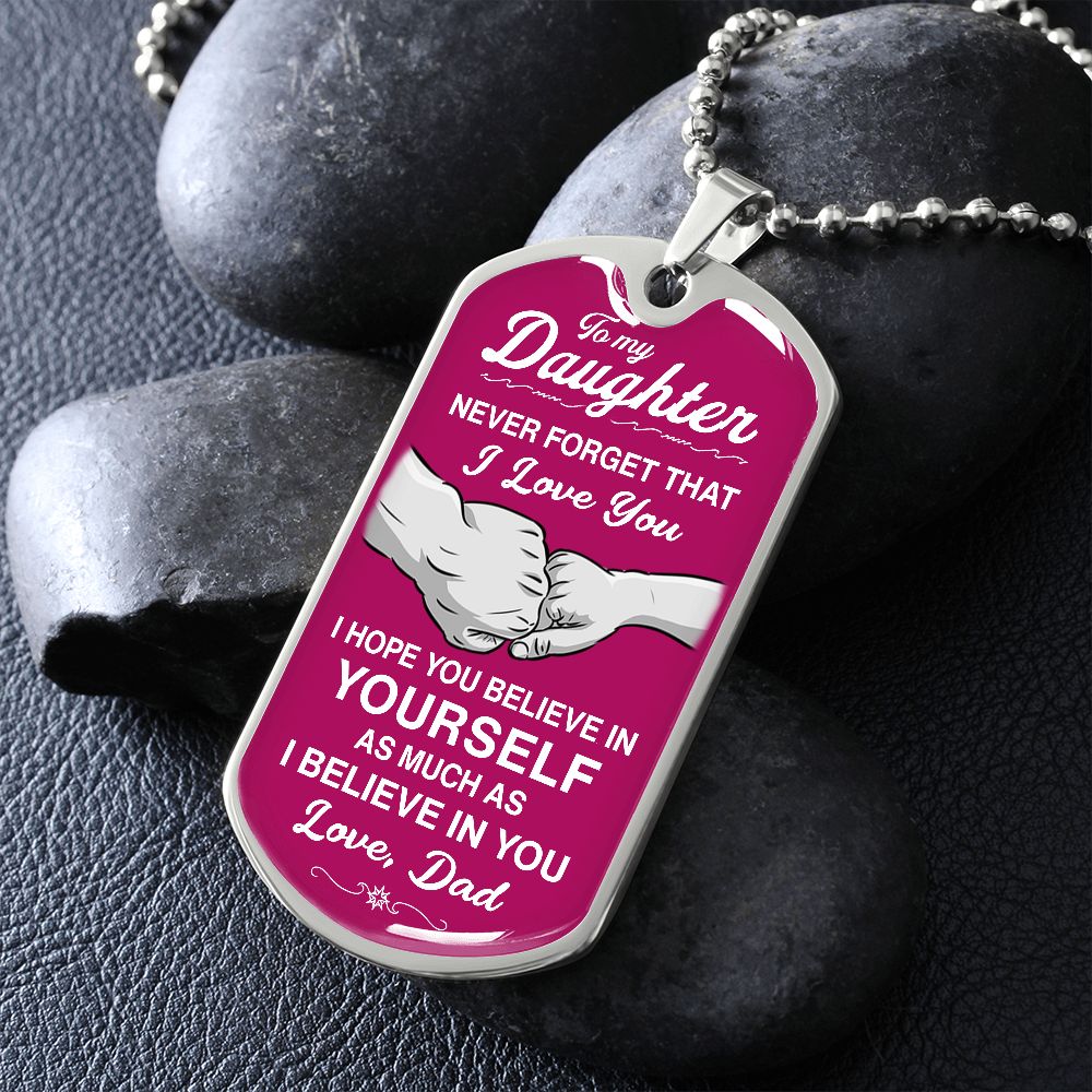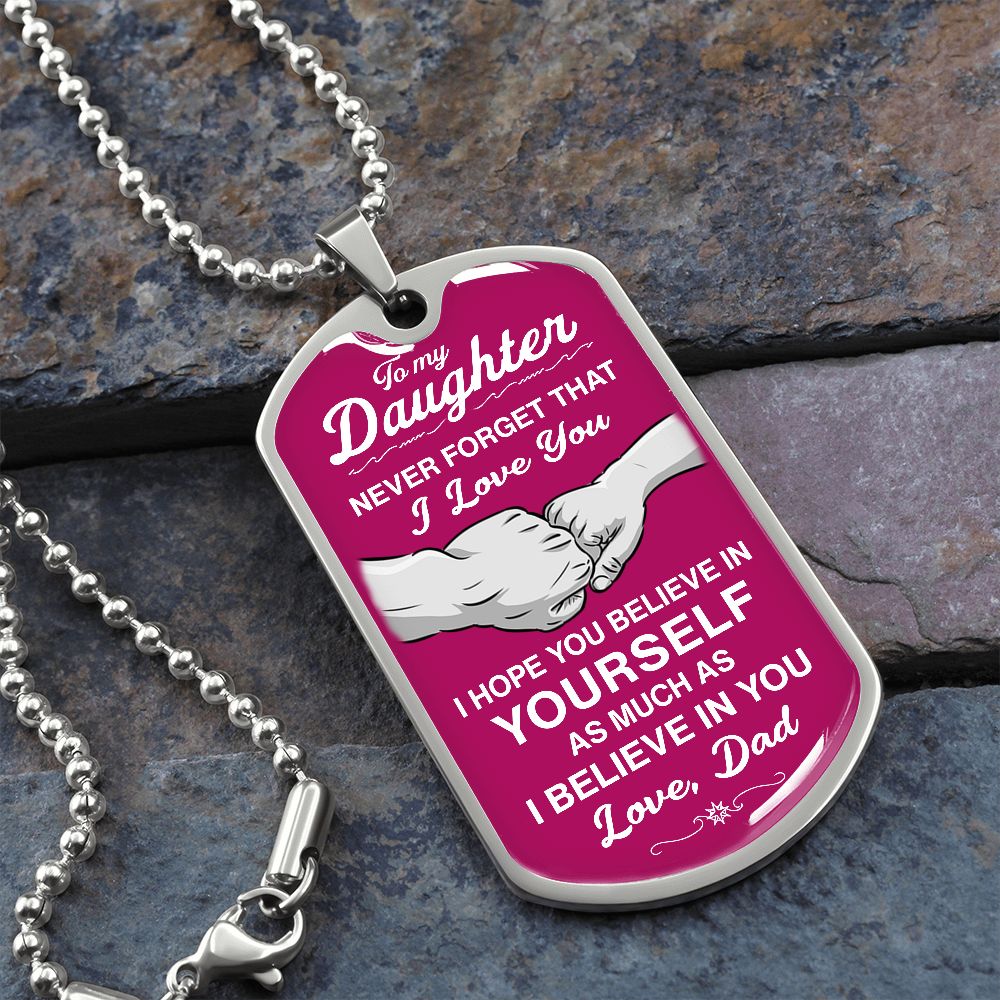 To My Daughter - Never Forget That I Love You - Dog Tag - Military Ball Chain