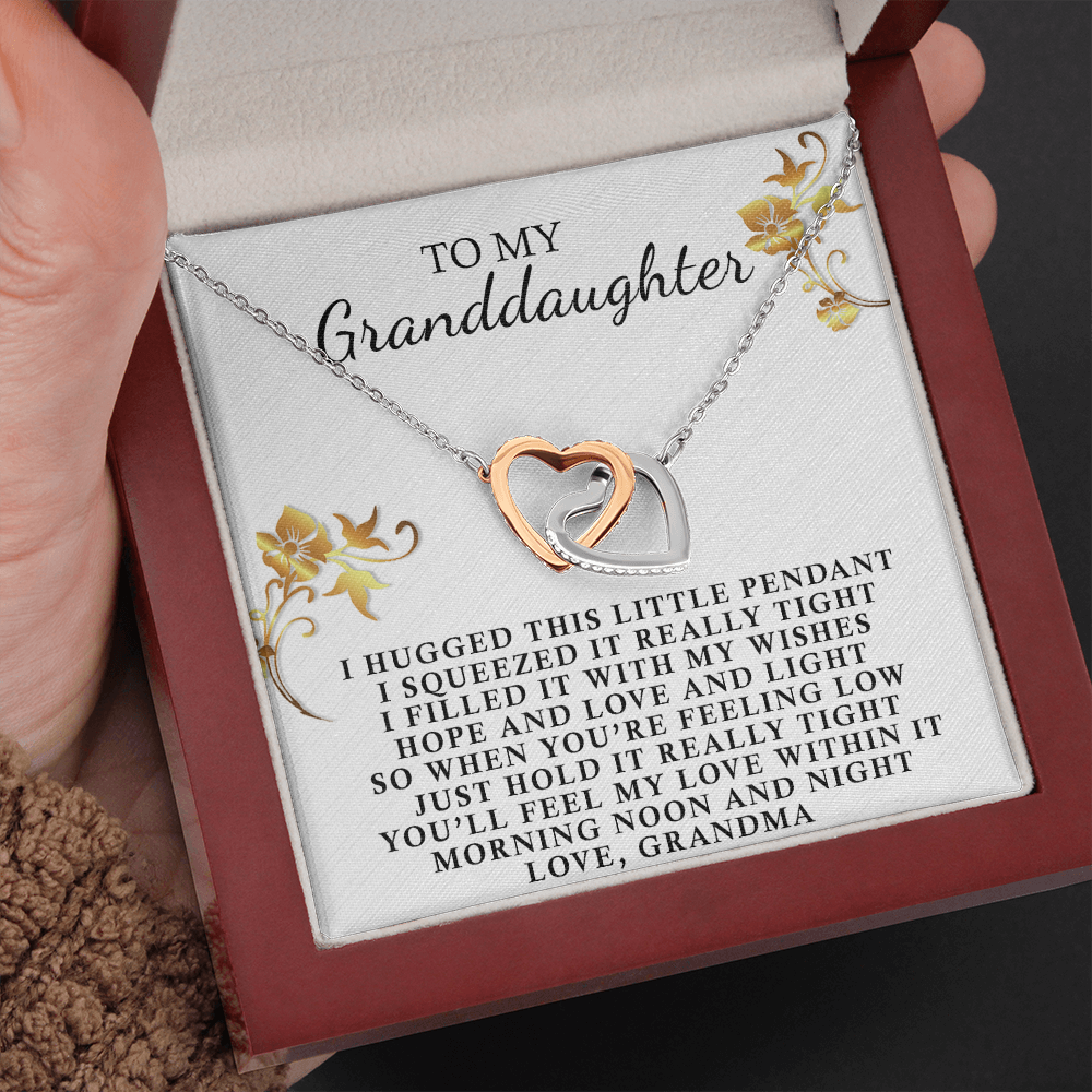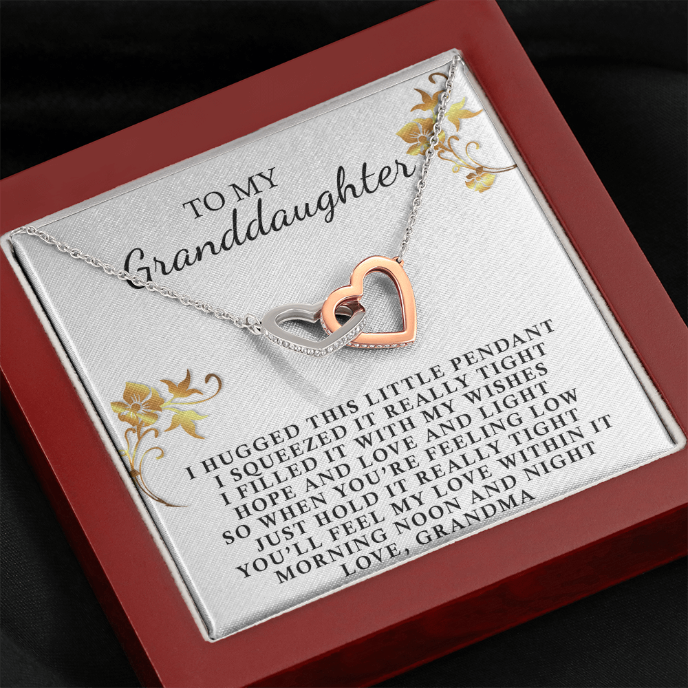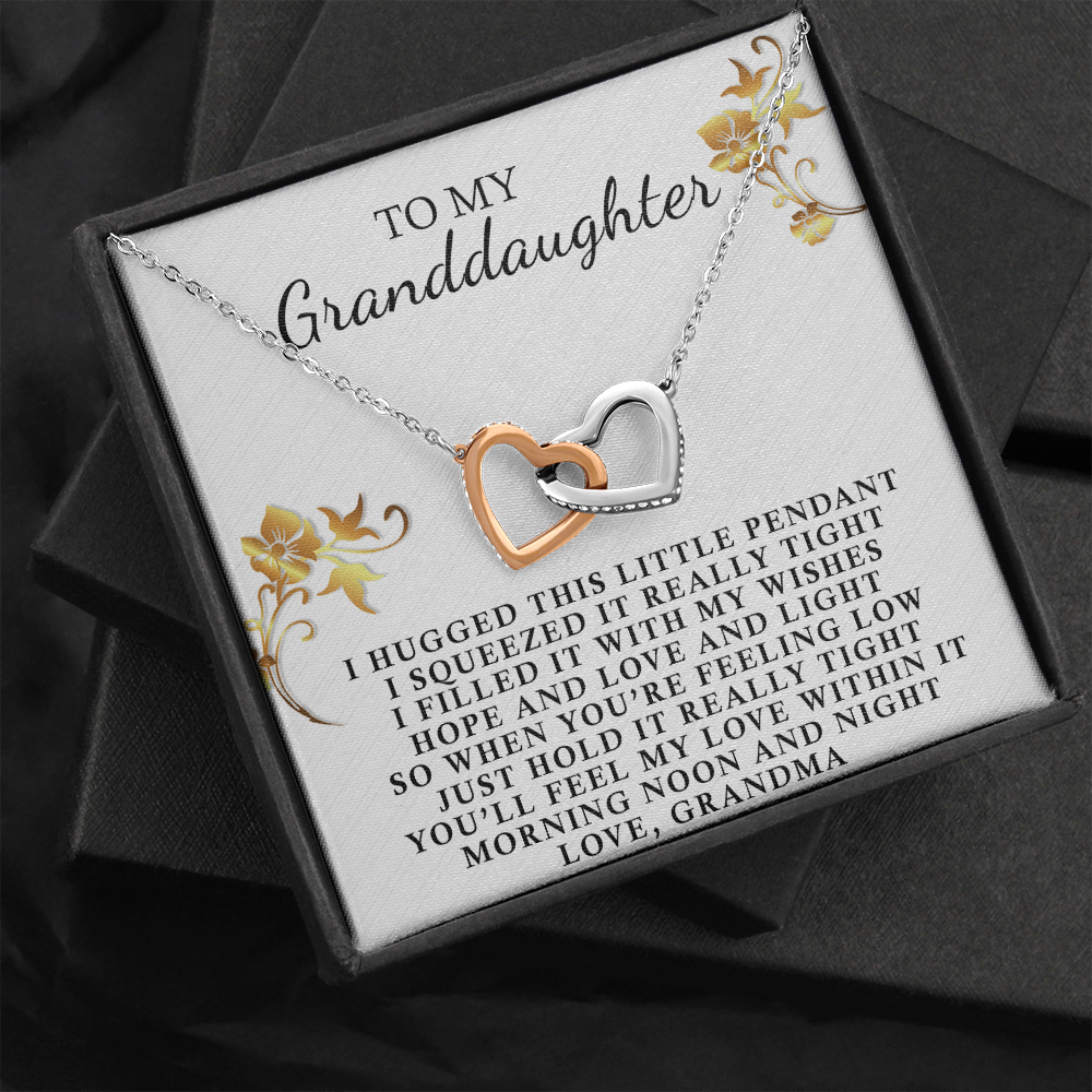 To My Granddaughter - I Hugged This Little Pendant - Interlocking Hearts Necklace