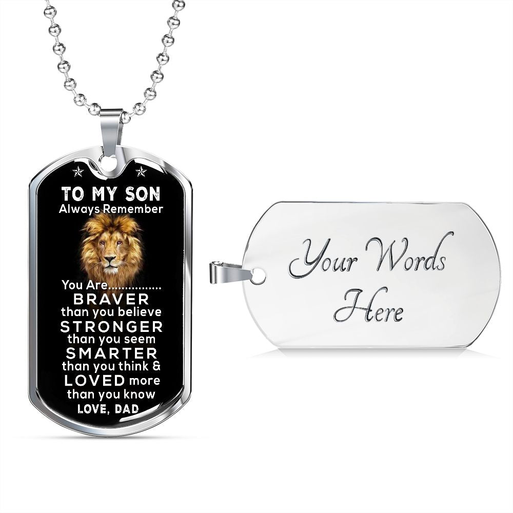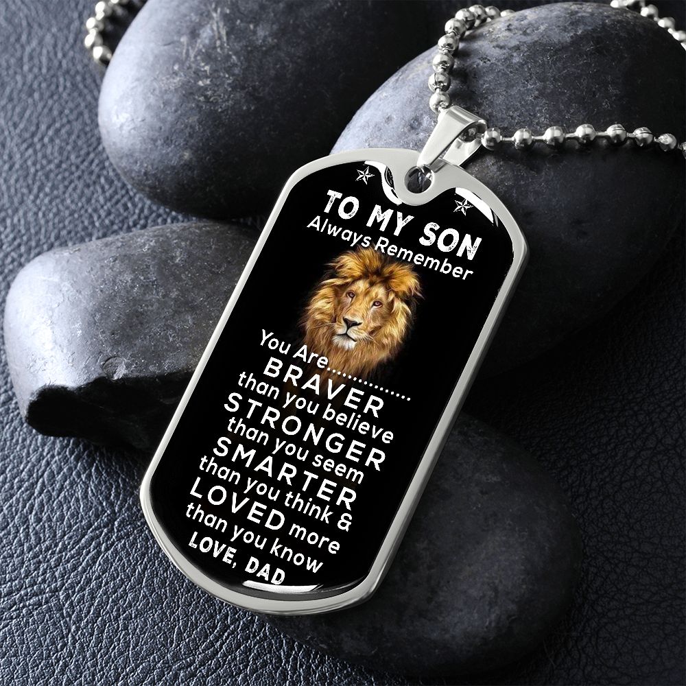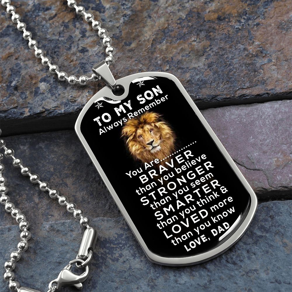 To My Son - Always Remember You Are Brave - Dog Tag - Military Ball Chain