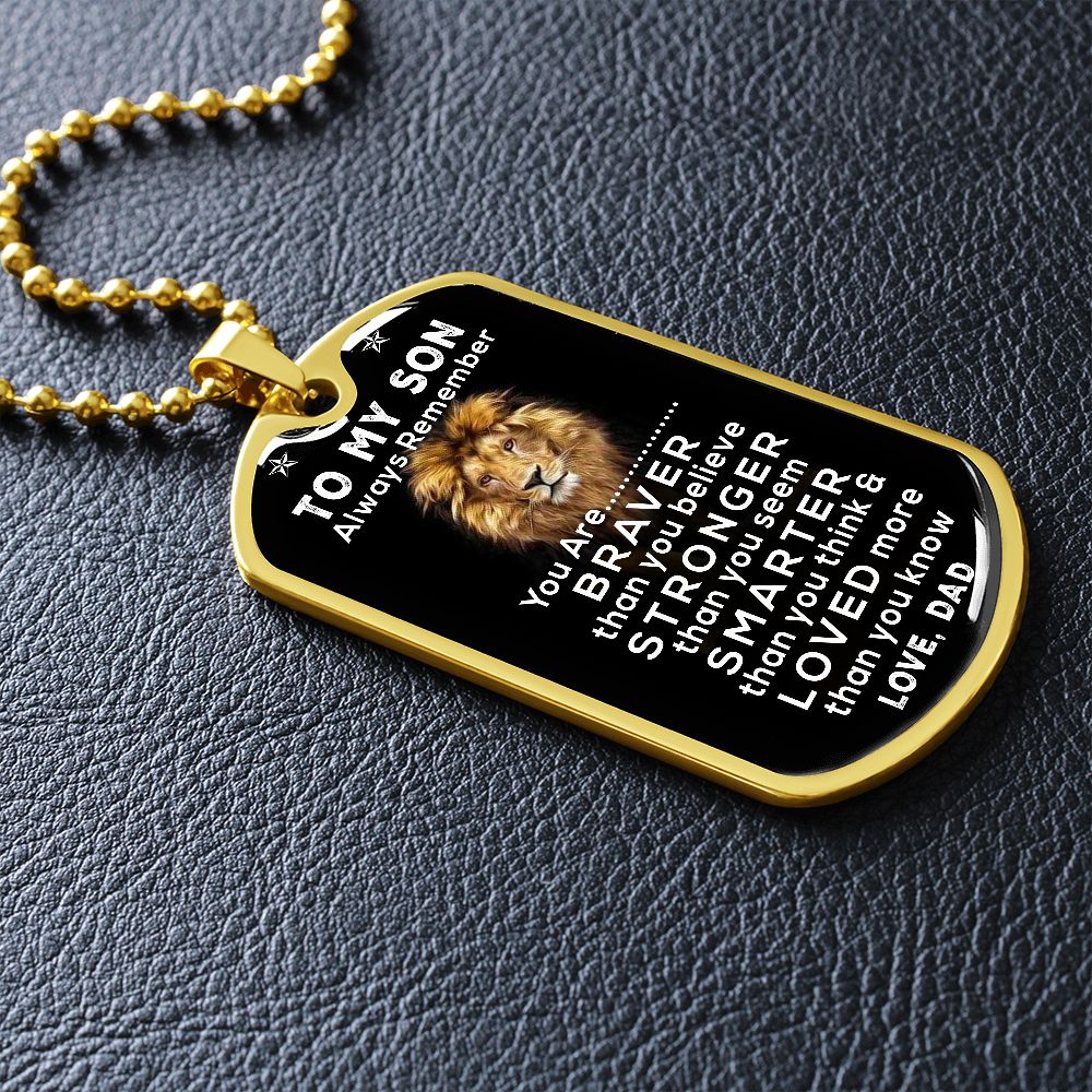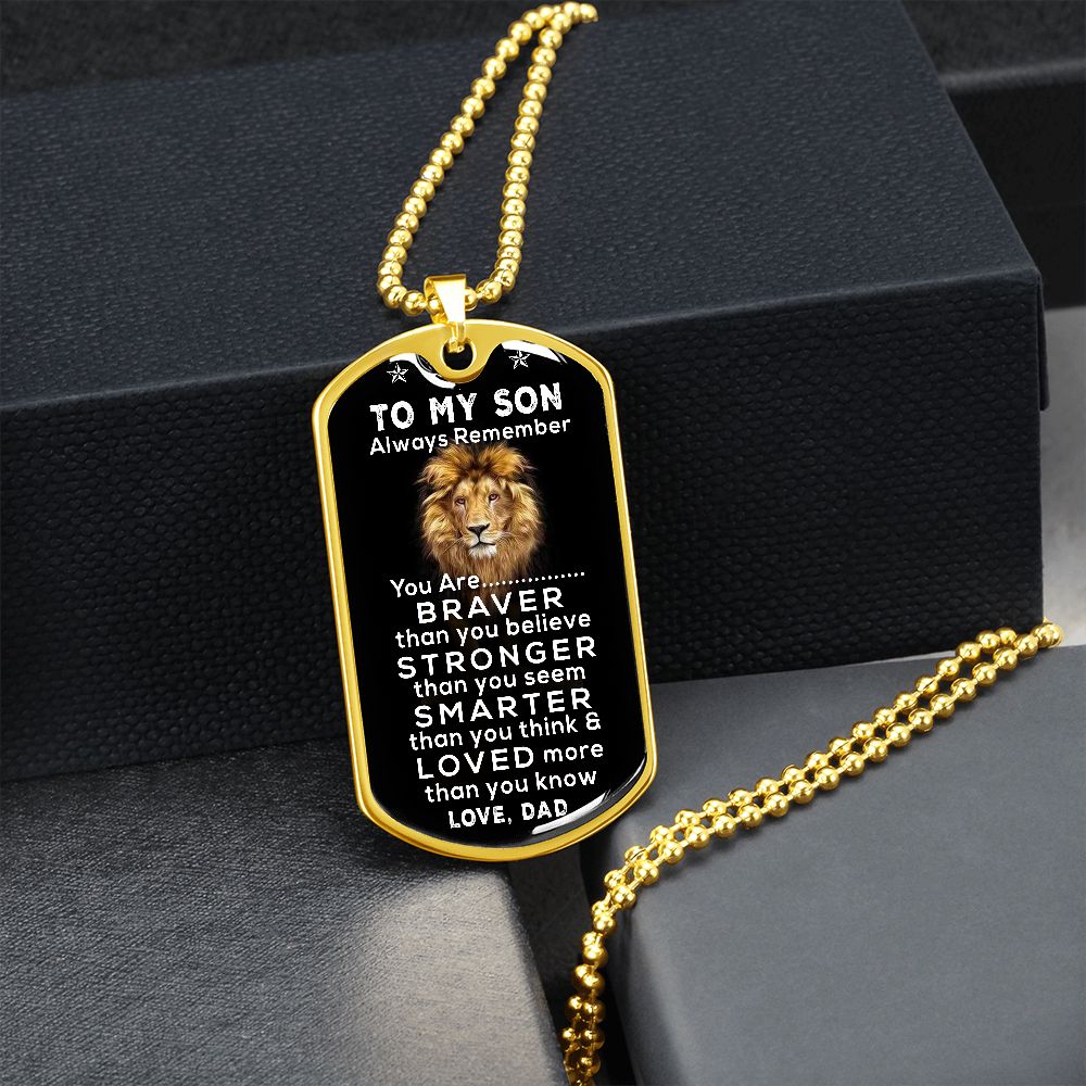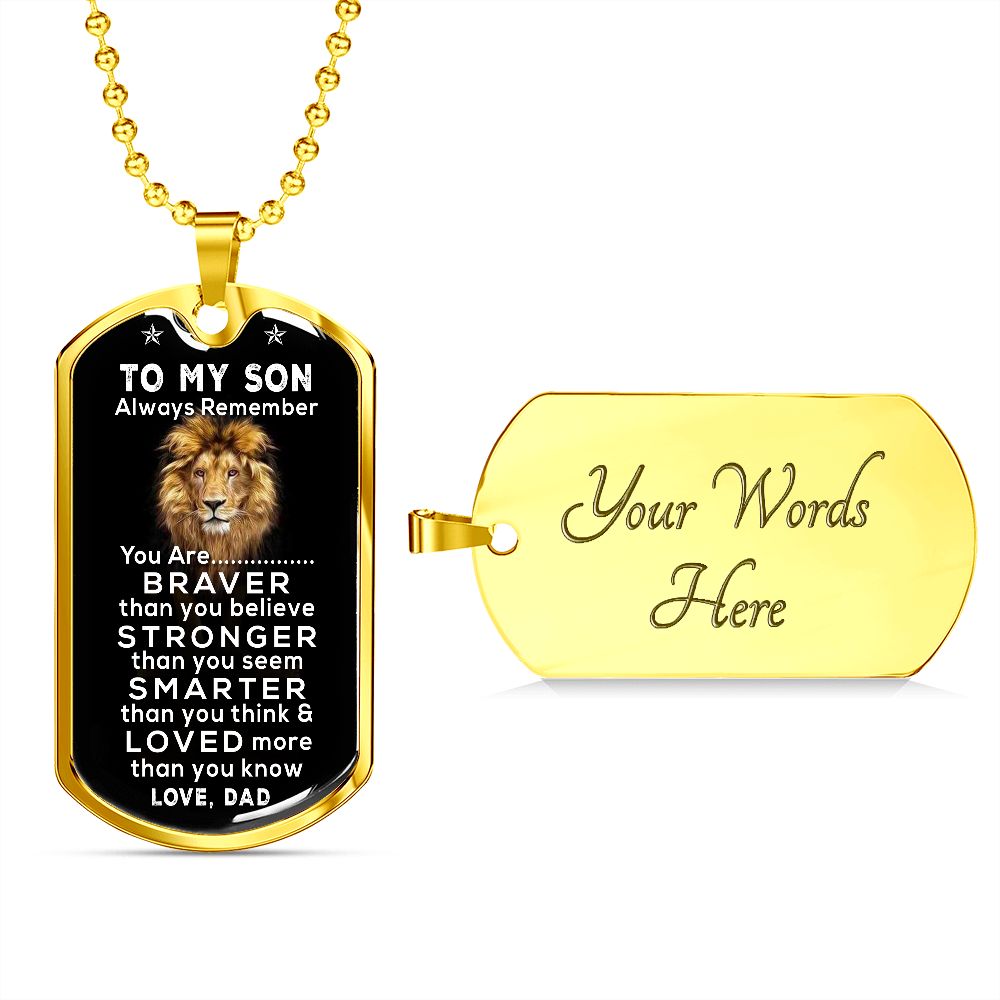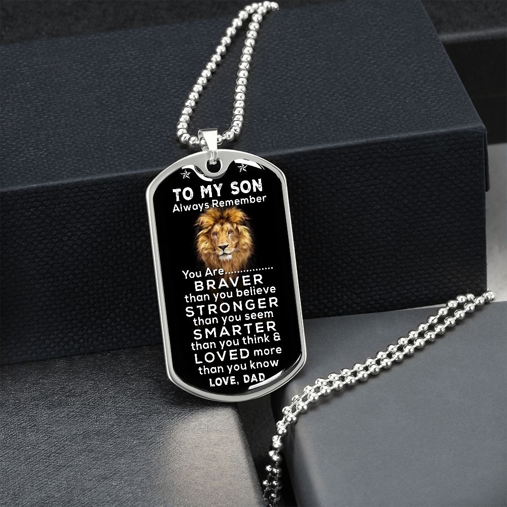 To My Son - Always Remember You Are Brave - Dog Tag - Military Ball Chain