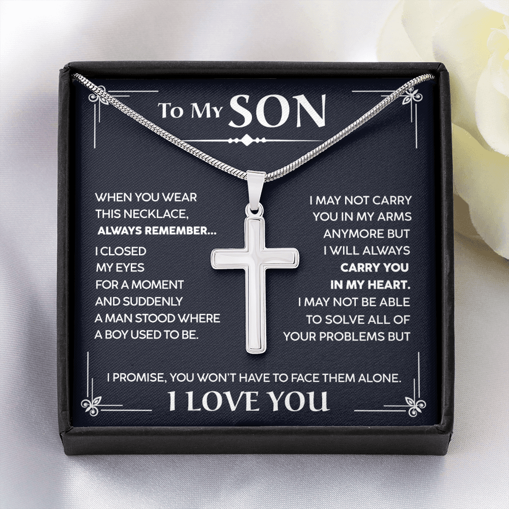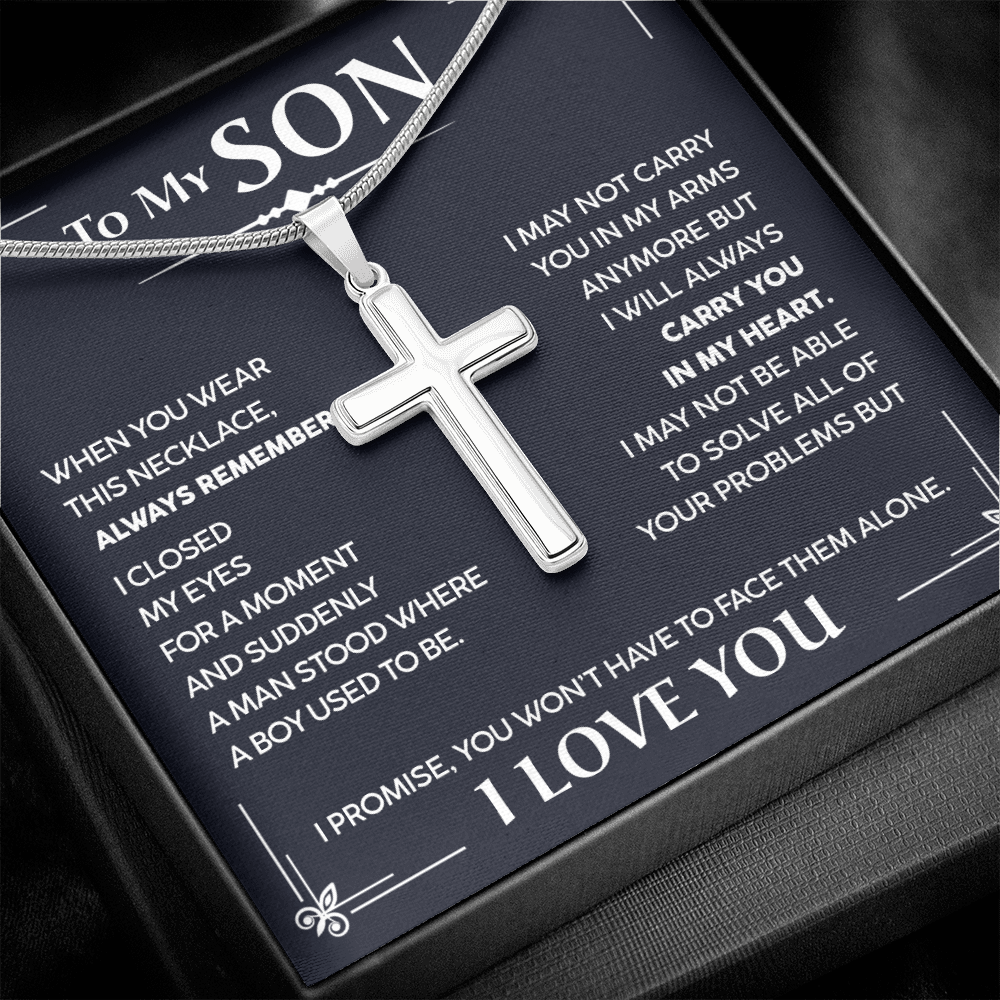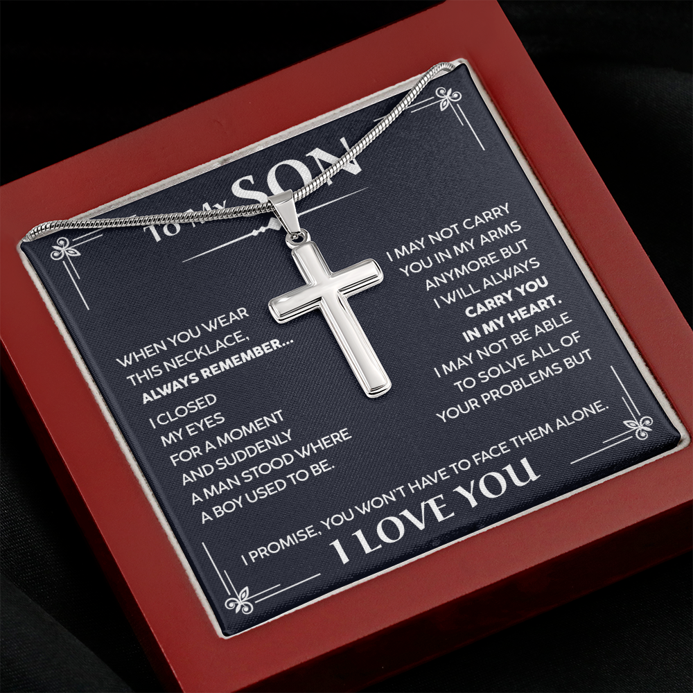 To My Son - I Will Always Carry You In My Heart - Cross Necklace