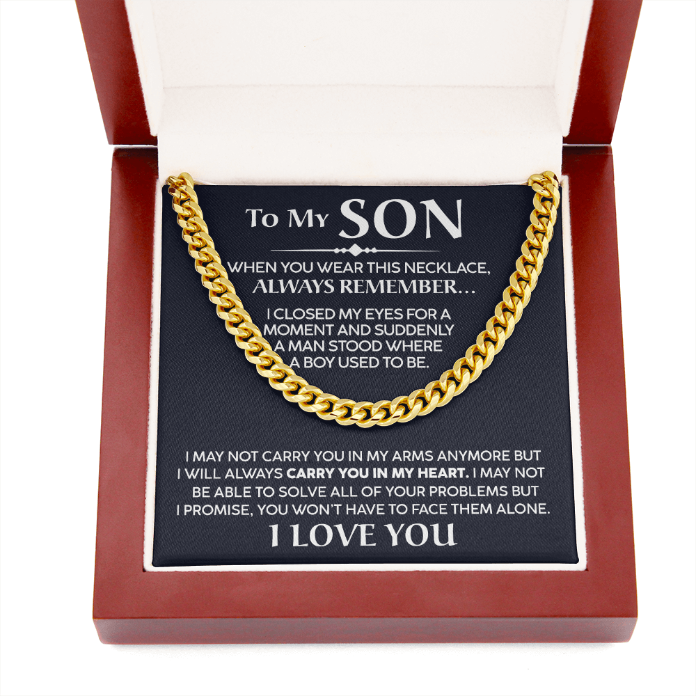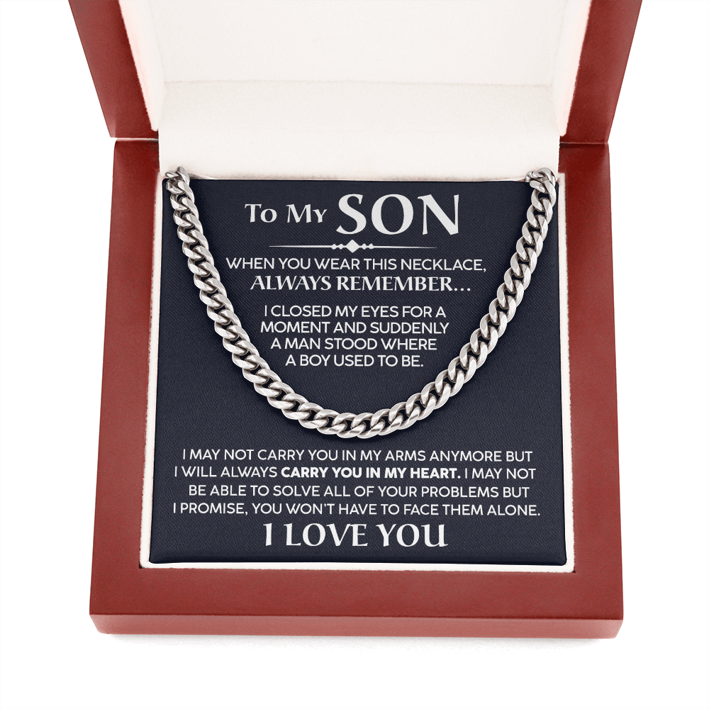 To My Son - I Will Always Carry You In My Heart - Cuban Chain Necklace