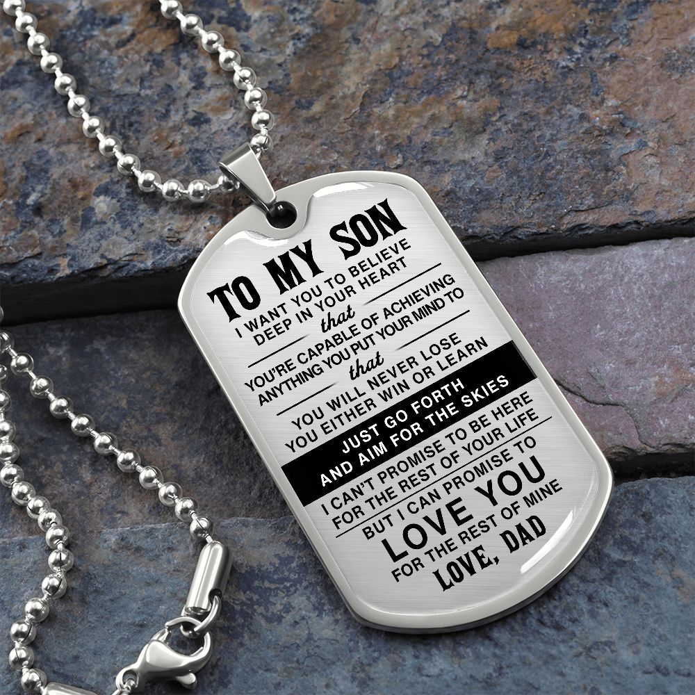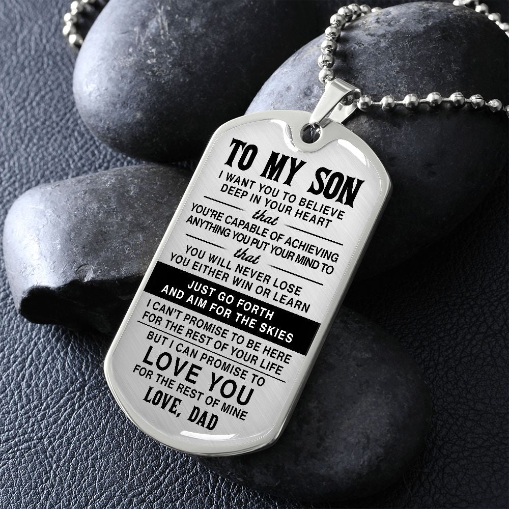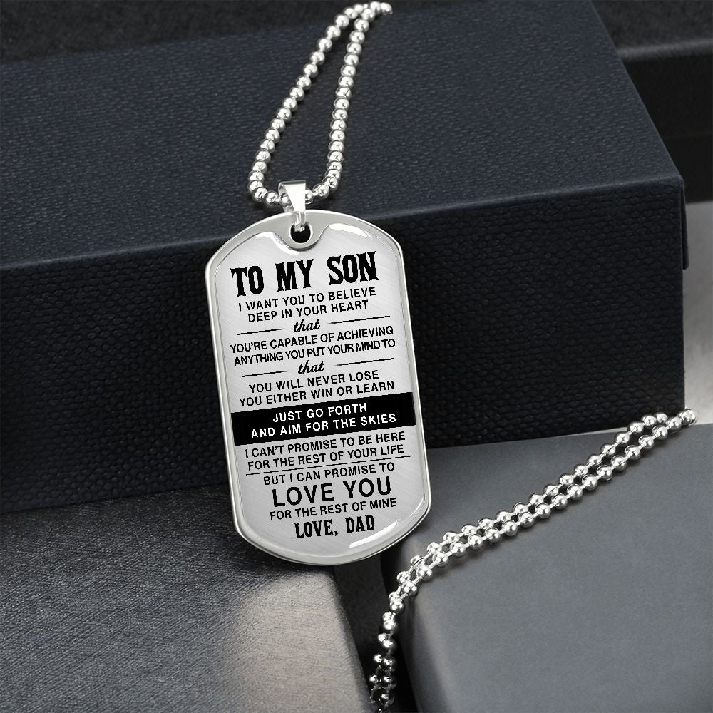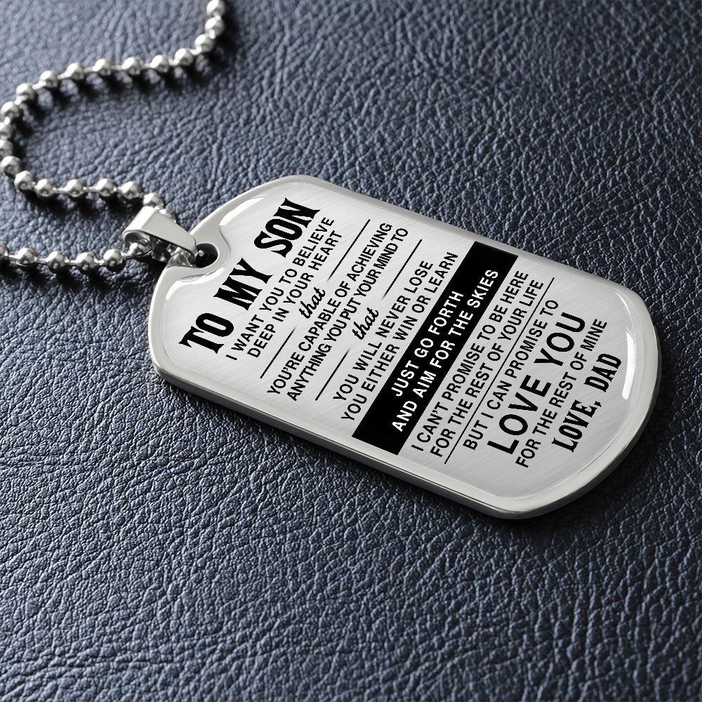 To My Son - Just Go Forth And Aim For The Skies - Dog Tag - Military Ball Chain