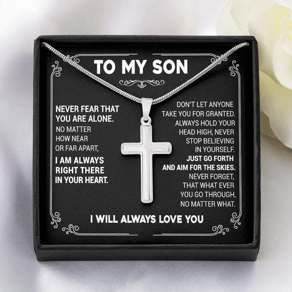 To My Son - Never Fear That You Are Alone -Cross Necklace