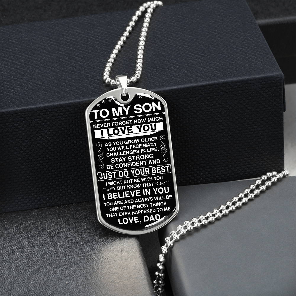 To My Son - Never Forget How Much I love You - Dog Tag - Military Ball Chain