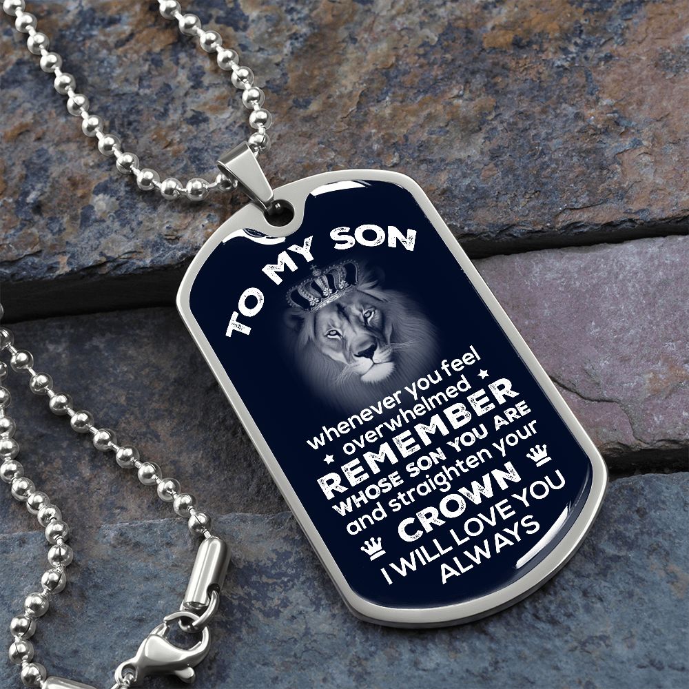 To My Son - Remember Whose Son You Are - Dog Tag - Military Ball Chain