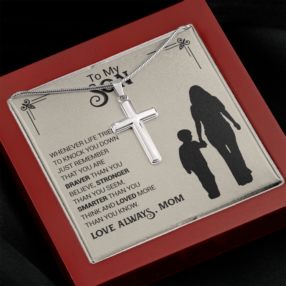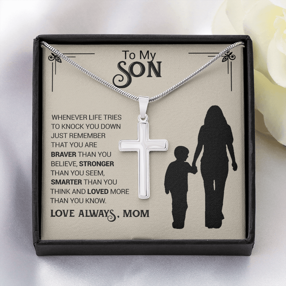 To My Son - You are Braver Thank You Seem - Cross Necklace