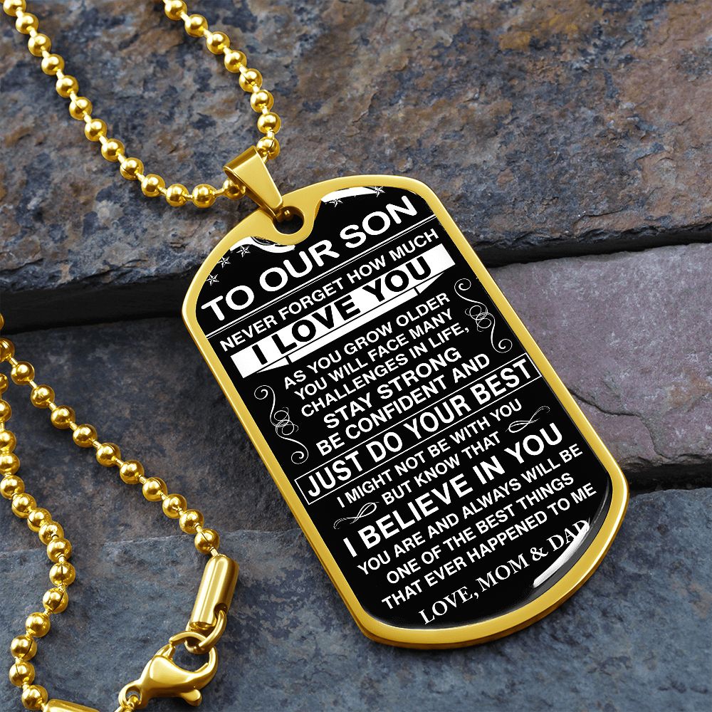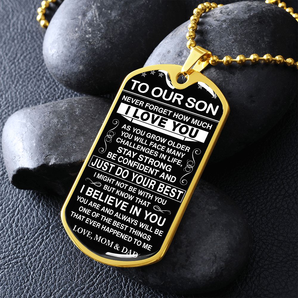 To Our Son - Never Forget How Much I love You - Dog Tag - Military Ball Chain
